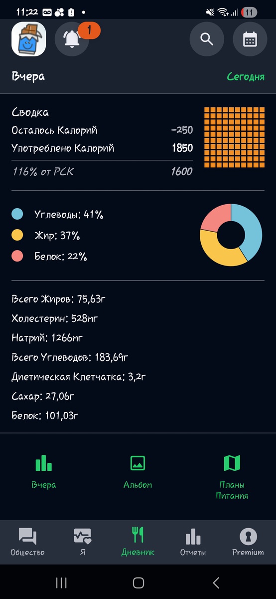 По калориям сегодня превысила. 2000 ккал б/ж/у 93/74/222 🤐