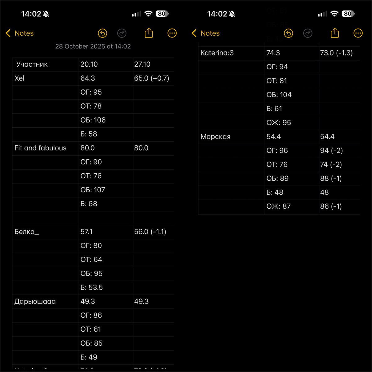 Спасибо за таблицу с результатами. Прекрасная визуализация 😊 и хорошо написано, что вес это не главное ❤️