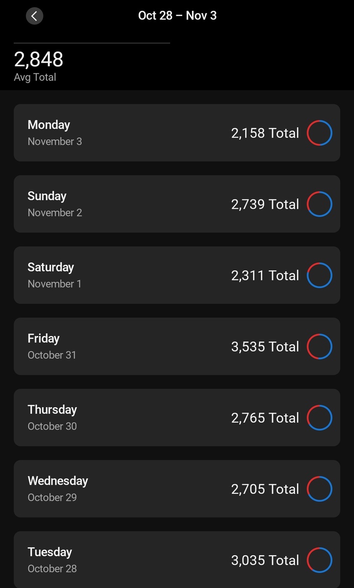 🏋♂️ Активность высокая на прошлой недели. Часы могут врать, ну хоть есть идея, сколько калорий сжигаю.