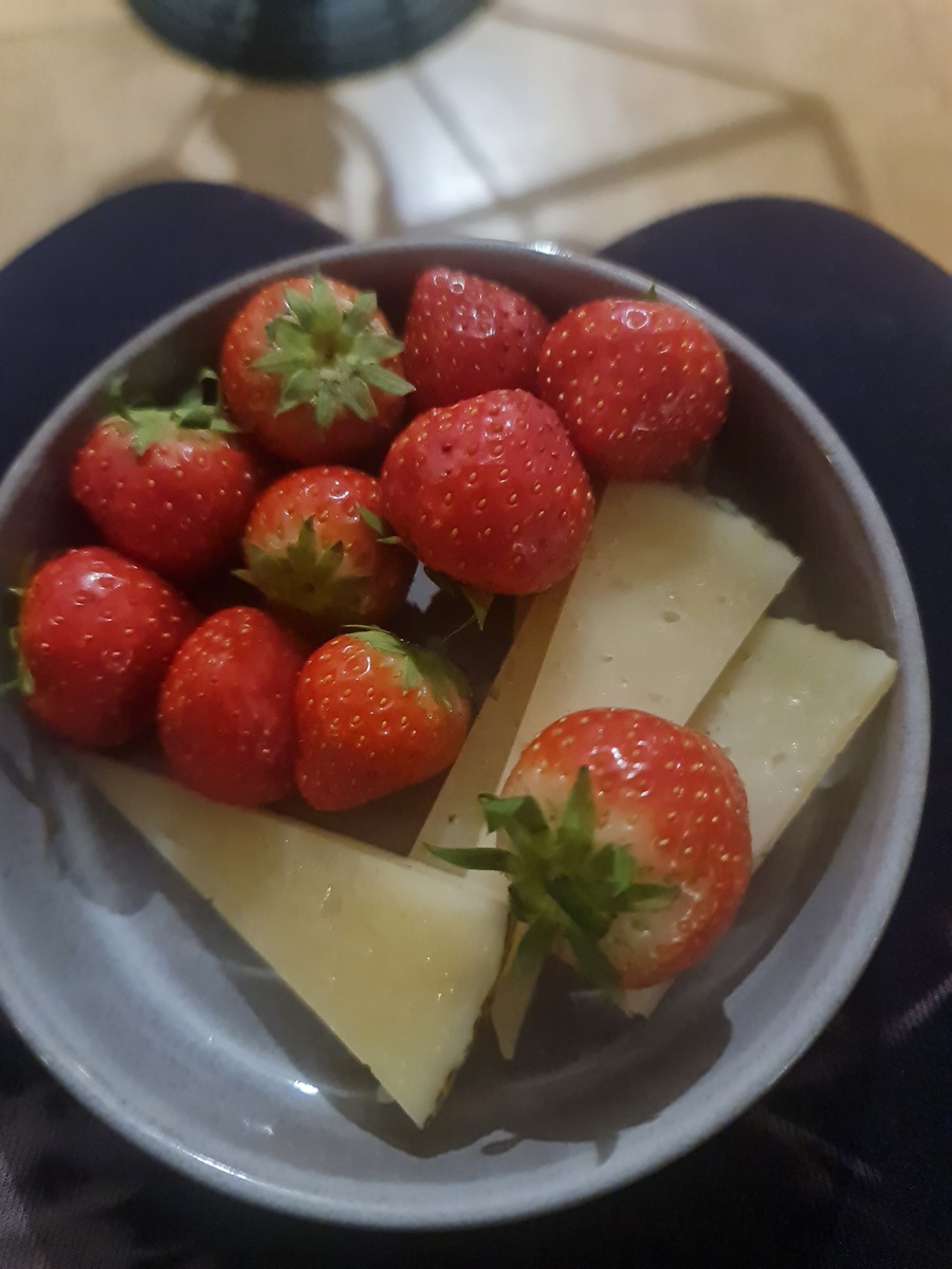 🍴ПИТАНИЕ: ~2000 ккал ✅️ вчерашний салат с собой на работу на обед и ужин. Перекус 2 сливы, грецкие орехи, 2 яблока, и клубника с сыром.