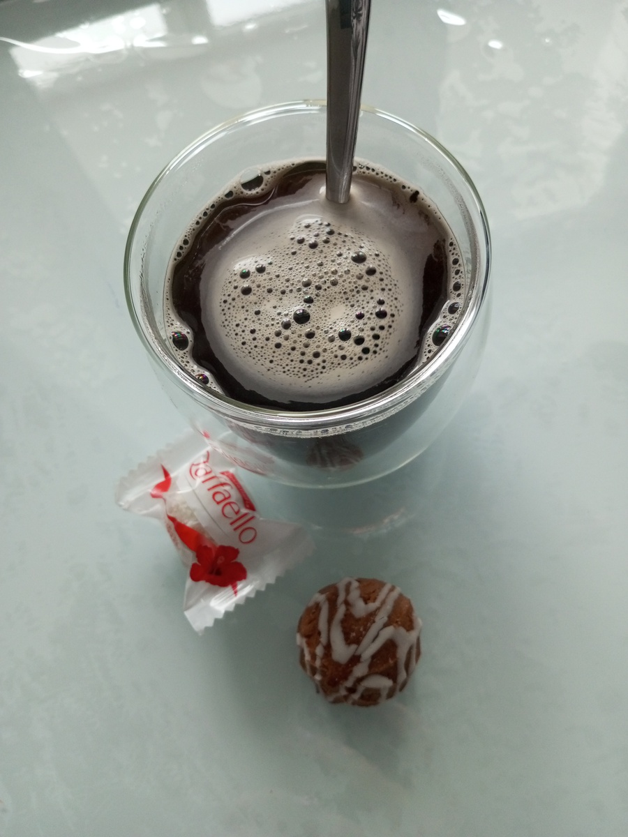 ☕На обед по пути домой купили шаурму, съела ещё 1 бонжурку, 1 рафаэлку и штук 5 мелких конфетюшек типа рафаэлки.