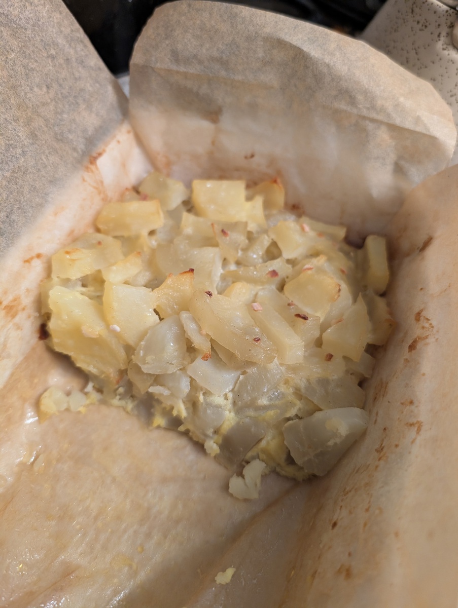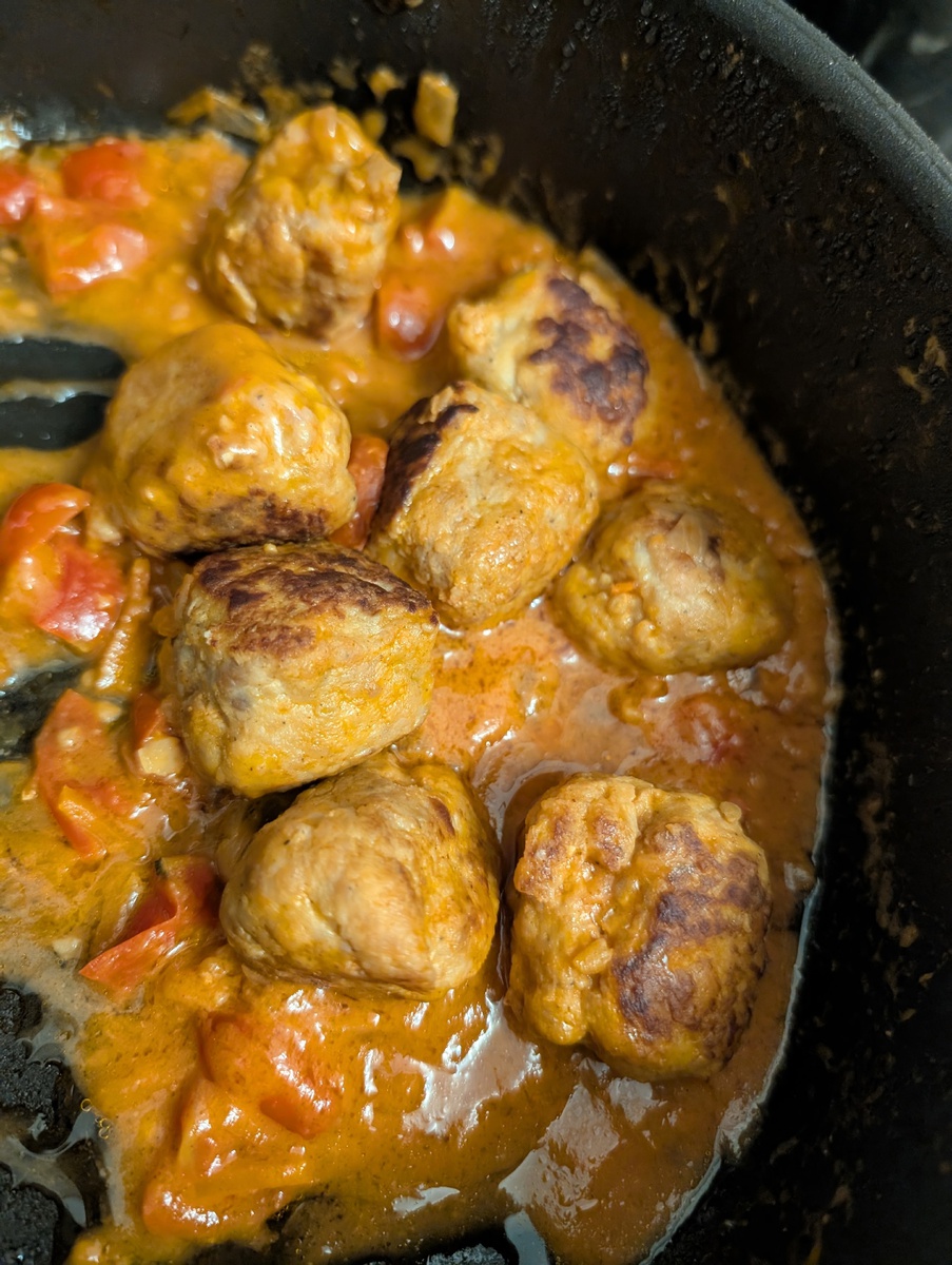 Обед - 280г картофельной запеканки и 130г куриных тефтелей