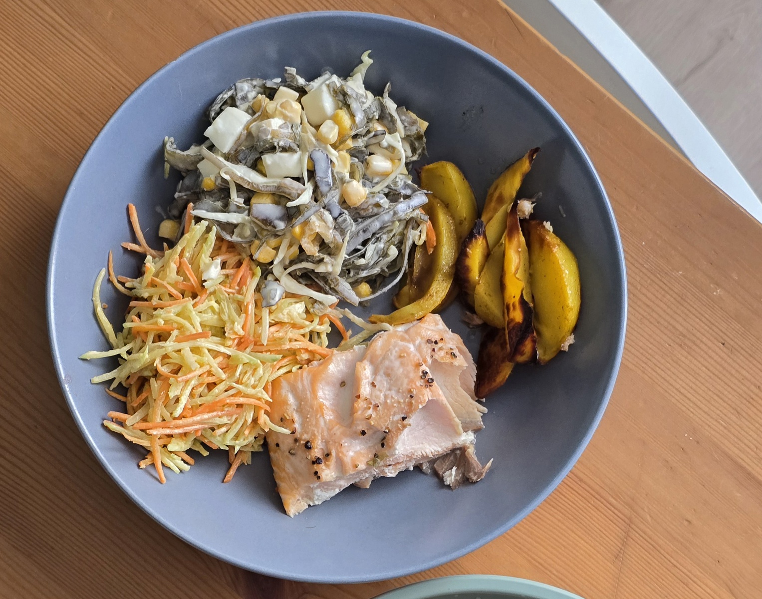 Все те две недели, что ничего не писала, ничего и не фотографировала, вот единственную фотографию еды нашла)) Старалась соблюдать диету 4б, но в дни всяких мероприятий, конечно, не выходило. Почти всегда ходила больше, чем 10 тысяч шагов, но тренировки не было ни одной, сегодня первая. Закончился насыщенный событиями этап на работе, теперь неделя передышки, а на следующей недели поедем с мамой к бабушке и дедушке. Пытаюсь восстановиться, приближаю питание к диете, начала принимать энтеросгель, алохол и пробиотики. Вес сегодня 74,6 кг, не знаю, насколько точно это.