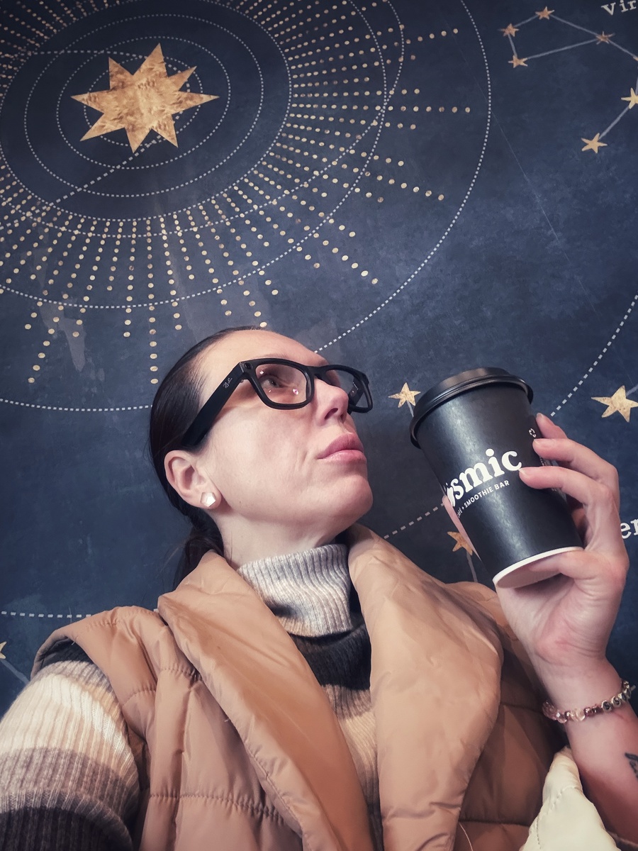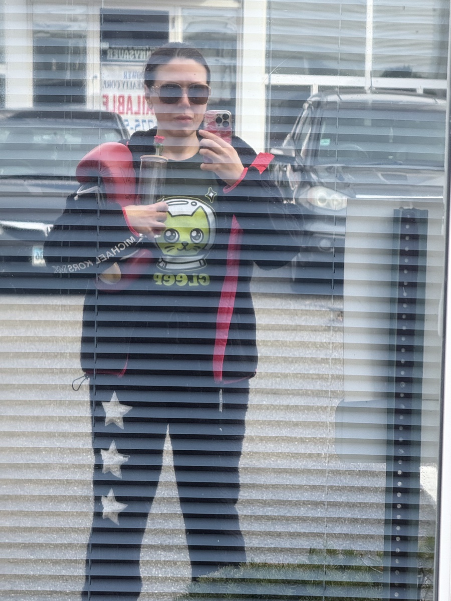 Утром поехали на второй съемочный день . К сожалению, только выехали и выяснили , что у нас низкое давление в шинах. Нашли причину. Позвонили в страховую за эвакуатор. Пока ждали, чуваки на заправке, где мы остановились «пукнуть в колеса» по-человечески спросили что случилось и помогли. Оказалось проблема была не такая страшная, как мы предлагали. Пока это все происходило я сходила за кофе и круассаном. Кофейня оказалась очень приятной и стильной. Мне понравилось.
