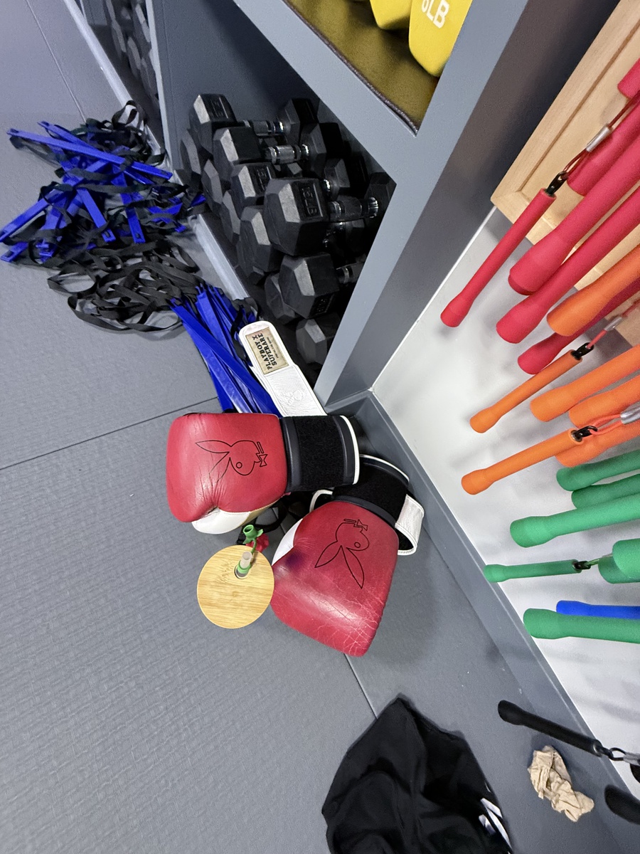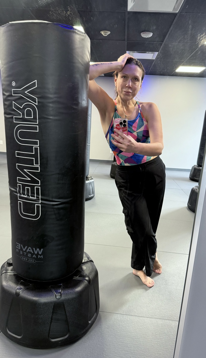 Она живет своей жизнью. Бьет грушу как котик породы манчкин ( такой коротколапый), не хуяк-хуяк, а тяп-тяп-тяп. Да и даже не бьет , а так..легонько толкает. Какого хера ты сюда ходишь? Непонятно. Хочешь кардио и весело прыгать-иди на зумбу. И ей никто ничего не говорит.