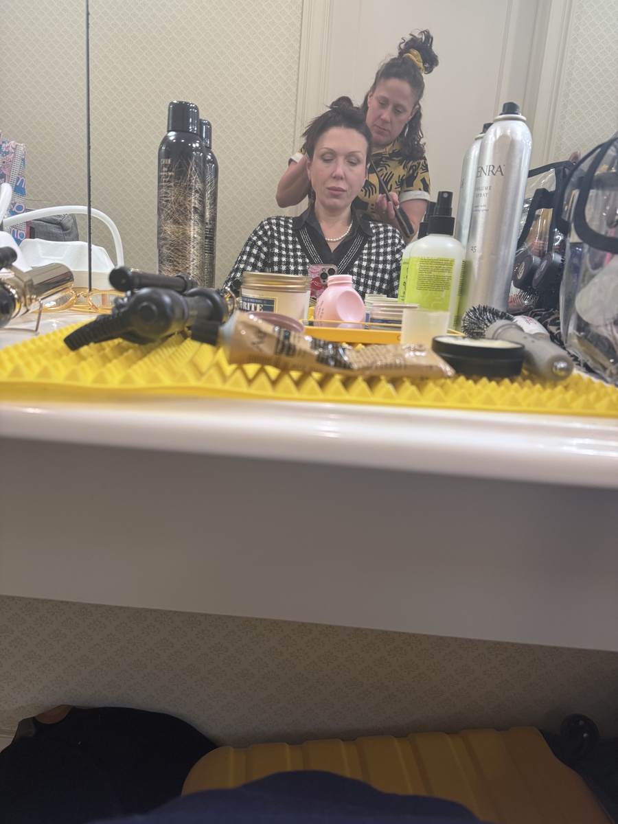Прическу мне делали около часа. Нашпиговали шпильками как ежа.